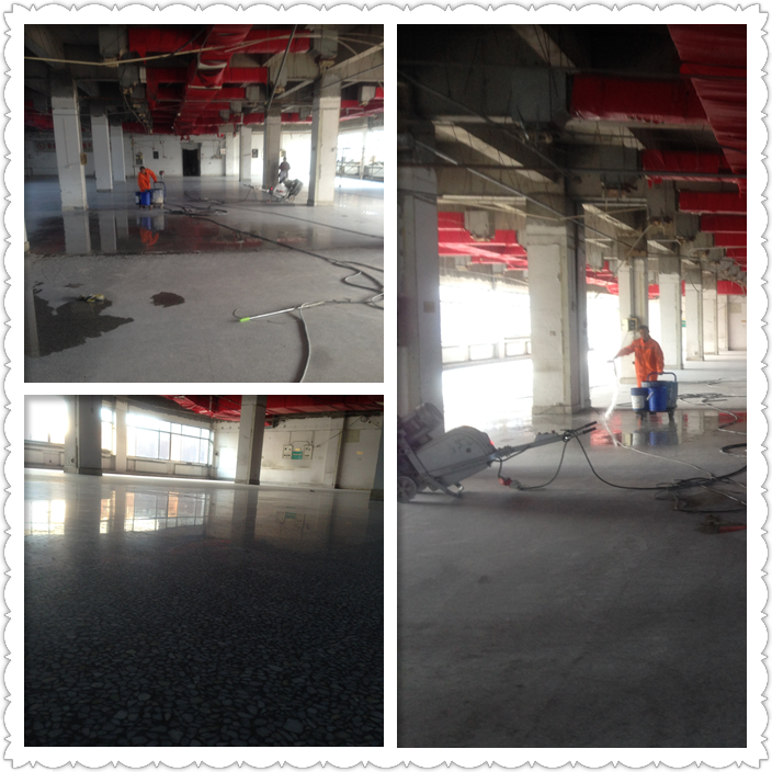 8、可根据地面状况选择水磨片(500和800目)打磨,同时用吸尘器吸干地面的残留材料)