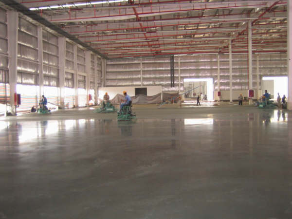 混凝土金刚砂耐磨硬化地坪是由特制的耐磨骨料分两次撒布在初凝的混凝土上,再通过专业设备进行提浆研磨而成,通过该工艺制作的地坪能够 使混凝土的强度提高2--3倍以上,从而提高了混凝土的耐磨性及抗冲击能力,同时也提高了混凝土的平整度。